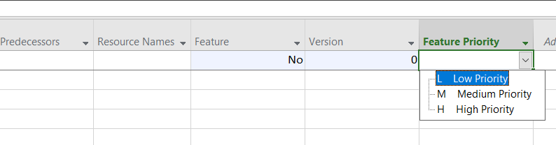 Choose Flag1 (Feature). Repeat for Number1 (Version) and Text1 (Feature Priority). You should see the following three columns.