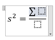 Then select the entire numerator, from sum symbol to the closing parenthesis and click on Script > Superscript and then type “2”. Then type “n – 1” in the denominator. You should see the following: